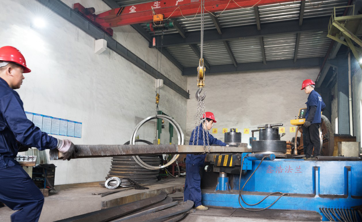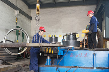 鍛打、車削爲一體的流水生産線,公司引進優質卷制法蘭設備,採用瞭大